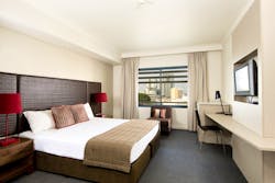 Air-conditioned with great facilities and views over the city or harbour featuring a workstation and WiFi internet (fees apply) as well as a large LCD TV with Foxtel and in-house movies. King or two single beds, mini-bar and tea and coffee making facilities.