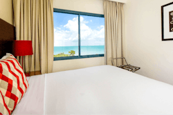 Views of Darwin Harbour and the Arafura Sea, this two-bedroom Penthouse features large windows with a private balcony. Living area with LCD TV featuring Foxtel and in-house movies, as well as air-conditioning and WiFi internet (fees apply). Ideal for families, couples, groups and executives, with a large boardroom table ideal for business meetings.