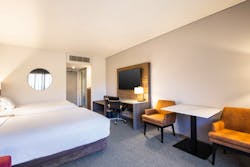 Designed for comfort and convenience, our newly refurbished king deluxe room with mountain view offers the space and privacy you need to work or relax. Unwind on the signature Sweet Dreams by DoubleTree king bed while you enjoy your favourite program on the 55" smart TV.