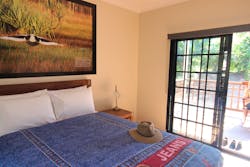 Bush luxury - Territory Style. These cabins have one queen size bedroom and a second bedroom with 2 single beds. The bathroom has a shower and bathtub with views of the sky and trees, the bathroom courtyard also has an outdoor shower. A large dining verandah with barbecue is serviced by a small kitchenette with microwave, fridge, toaster, kettle and basic crockery and cutlery. Airconditioned throughout with satellite TV in both bedrooms.