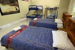 Ideal for large families and groups, the Homestead sleeps up to 15 people. The large verandah makes an ideal gathering place for your group to sit back and enjoy a barbecue and sunset views. It contains two double air-conditioned bedrooms, a large open plan area with one double and nine single beds, an adjoining lounge/ dining area, barbecue and outdoor setting. The kitchen has a stove, oven, dishwasher, fridge, microwave, toaster and kettle and basic pots, pans, crockery to go with it.