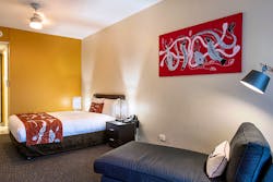 Room located on the ground floor of the hotel. All rooms open up to the rear courtyard with easy access to the pool. Rooms have either one queen bed or two double beds.