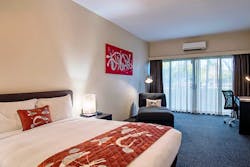 Located on the first floor of the hotel, the Superior room includes a Queen bed, a Single bed or two double beds and views of the landscaped courtyard and pool area.