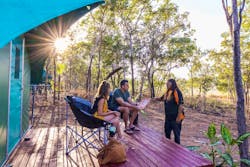 Travel to your exclusive home in the bush for the evening, Kakadu Billabong Safari Camp. Enjoy dinner under a blanket of stars and share a few stories while you relax by the campfire.