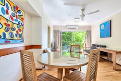 Two bedroom apartments have a dining table and chairs, lounge for guest comfort and all the modern facilities for a relaxing holiday.