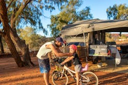 Mit Blick auf die George Gill Range bietet der Campingplatz eine Auswahl an grasbewachsenen und nicht grasbewachsenen Stellplätzen, mit oder ohne Strom. Einheimische Bäume bieten Schatten, Privatsphäre und eine Atmosphäre von Frieden und Ruhe.