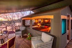 Diese geräumigen und wunderschön ausgestatteten Zelte sind gut positioniert und erhöht, um maximale Luftzirkulation und Aussicht zu bieten, und ermöglichen es Ihnen, das ikonische australische Camping wirklich auf einem wirklich authentischen, aber luxuriösen Niveau zu erleben. Der Fokus liegt auf Komfort mit hochwertiger Bettwäsche und Dekoration, Kingsize- oder Twin-Betten, einem eigenen Badezimmer mit einem Unterschied, luxuriösen Annehmlichkeiten, Bademantel und Hausschuhen, Strom, Heizung, Klimaanlage, Kaffeepadmaschine und einer kostenlosen gefüllten Minibar eine Auswahl an Bier, Wein und alkoholfreien Getränken, damit Sie sich während Ihres Aufenthalts wohlfühlen.