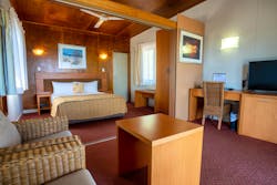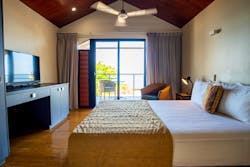 This room contains either a queen size bed or a queen size bed and a single bed. All suites have a private balcony and ocean views.