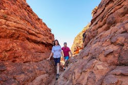 View an outback sunrise at Kata Tjuta and a walk with your Guide to the Valley of the Winds. Hear fascinating stories of the geology, history and culture of Kata Tjuta. This incredible formation of rock domes extends six kilometres into the ground and is the remains of erosion that began more than 500 million years ago. The 5.4 kms walk to Valley of the Winds takes you down into a timeless haven within the domes through creek beds.