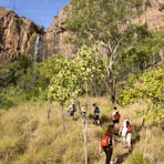 アーネムランド断崖の西端に沿って、砂岩の台地、森林地帯、モンスーン林、絵のように美しい小川を横切ります。この地を伝統的に旅してきたジャオイン族の人々の足跡を辿ることができます。