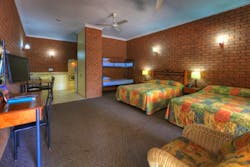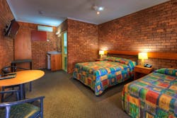 Standard motel rooms have a double bed and a single bed. Two triple motel rooms are also available.