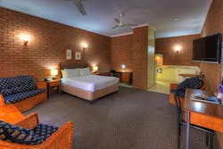 The deluxe motel rooms have a queen size bed and a spacious living area.