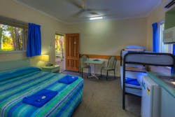 Stay in one of the resort's suites or take the budget accommodation option of a self-contained cabin or villa. Set up a caravan on one of the well-landscaped and shaded camp sites or pitch a tent and sleep under the stars.