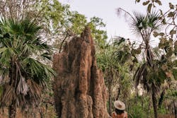 Next, we venture through the monsoonal rainforest to witness one of Kakadu’s most iconic sights: the Magnetic Termite Mounds. These extraordinary structures, some towering up to 3 meters tall, are carefully constructed by termites to face the magnetic poles.