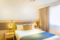 The stylish separate bedroom offers a king-size bed and second television. With the addition of two sofa beds in the living area, the apartment comfortably sleeps up to four people. Cots and interconnecting 1 bedroom apartments are available on request and subject to availability.