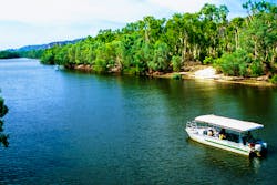 The Guluyambi Cultural Cruise is a unique boat tour on Kakadu's scenically spectacular East Alligator River. Take in the wonderful pristine wilderness of this World Heritage landscape as you leisurely cruise up stream. An Aboriginal guide provides guests with an insight into their culture and local mythology, the river's abundant food chain, traditional uses for many plants and animals as well as bush survival skills. Disembark on the Arnhem Land side of the river for a display of traditional hunting and gathering implements. Limited to just 25 guests, the Cruise ensures an intimate and personalised cultural experience.
