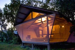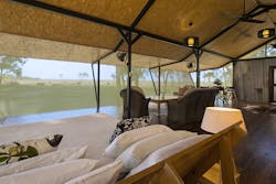 Nine safari bungalows are raised on stilts overlooking the floodplain with mesh screen ceiling to floor walls on three sides around the bed, providing guests with an experience in which they can hear, see and almost touch the wildlife and wilderness around them.