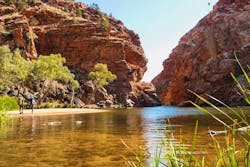 Stroll through the shady creek bed of Simpsons Gap with the rare black footed rock wallaby grazing on the rocky slopes.